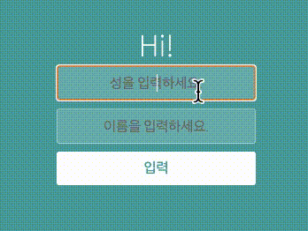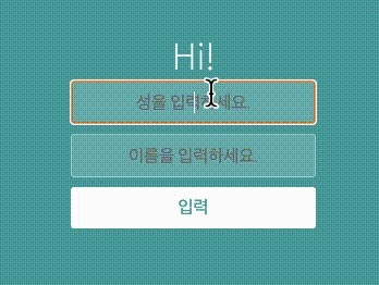 이름 필드에 입력 한 글자는 Hi! 와 성 옆에 나오게 만들어보자.
