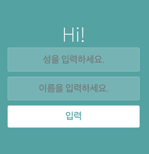 위와 같은 화면이 있다. 성을 입력하는 필드에 무언가는 입력하면 Hi! 옆에 입력된 글자가 나오고